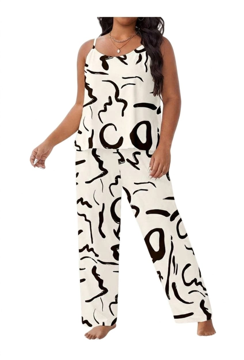 بيجامة الخطوط التجريدية: للبنات اللي ذوقهم “Artistic” ومختلف، أبيض في أسود برسومات فنية تجريدية تخلي شكلك مميز.