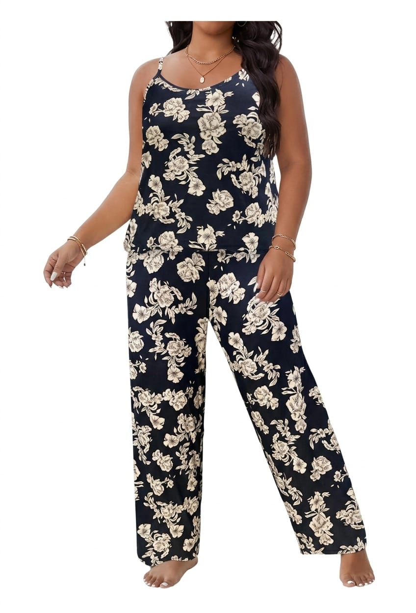 بيجامة الورد الملكي: الراعي الرسمي للأناقة.. لون كحلي داكن مع ورد سكري رقيق، طقم يجمع بين الراحة والشكل الشيك.
