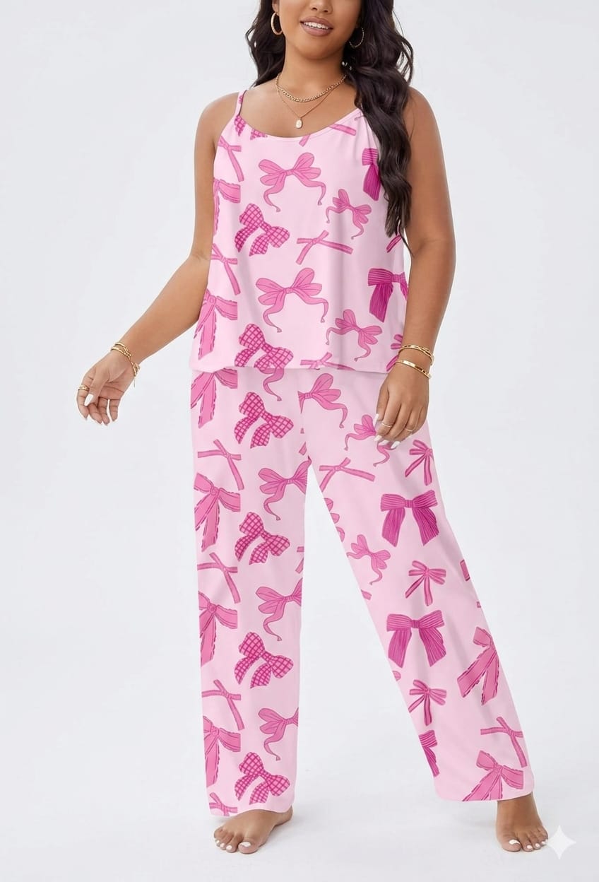 بيجامة فيونكات الدلع: مين فينا مش بيحب الـ “Bows”؟ بيجامة وردي رقيقة جداً ومنقوشة بفيونكات كيوت هتخلي مودِك دايماً حلو.