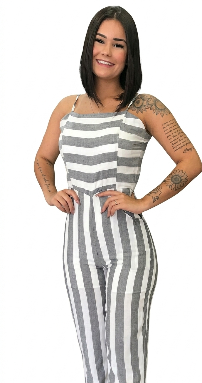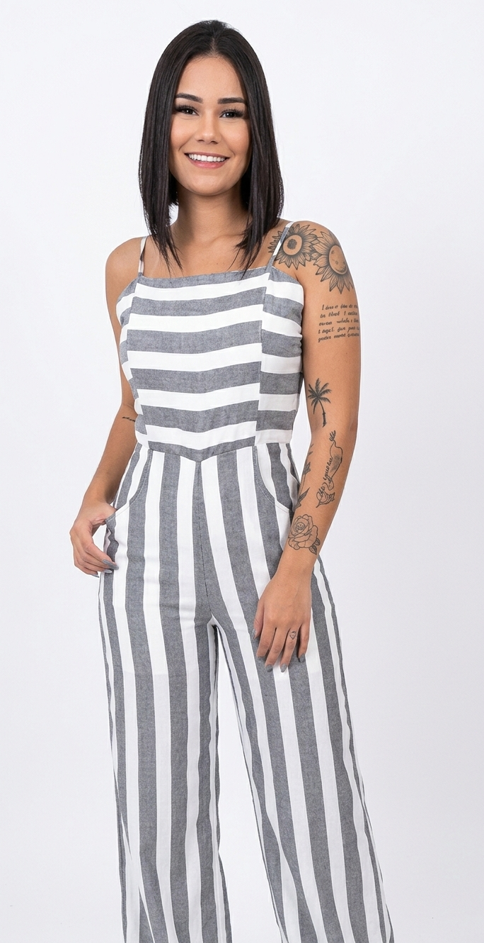 اطلالة متكاملة بقطعة واحدة! تسوقي الجمبسوت المخطط بحمالات رفيعة وتصميم عملي يجمع بين الراحة والأناقة. مثالي لخروجاتك الكاجوال أو في العطلات الصيفية. اطلبي الآن وتمتعي بلوك جذاب.