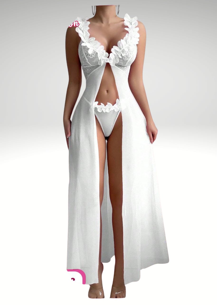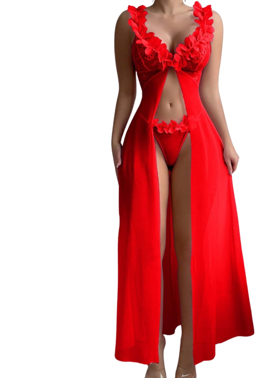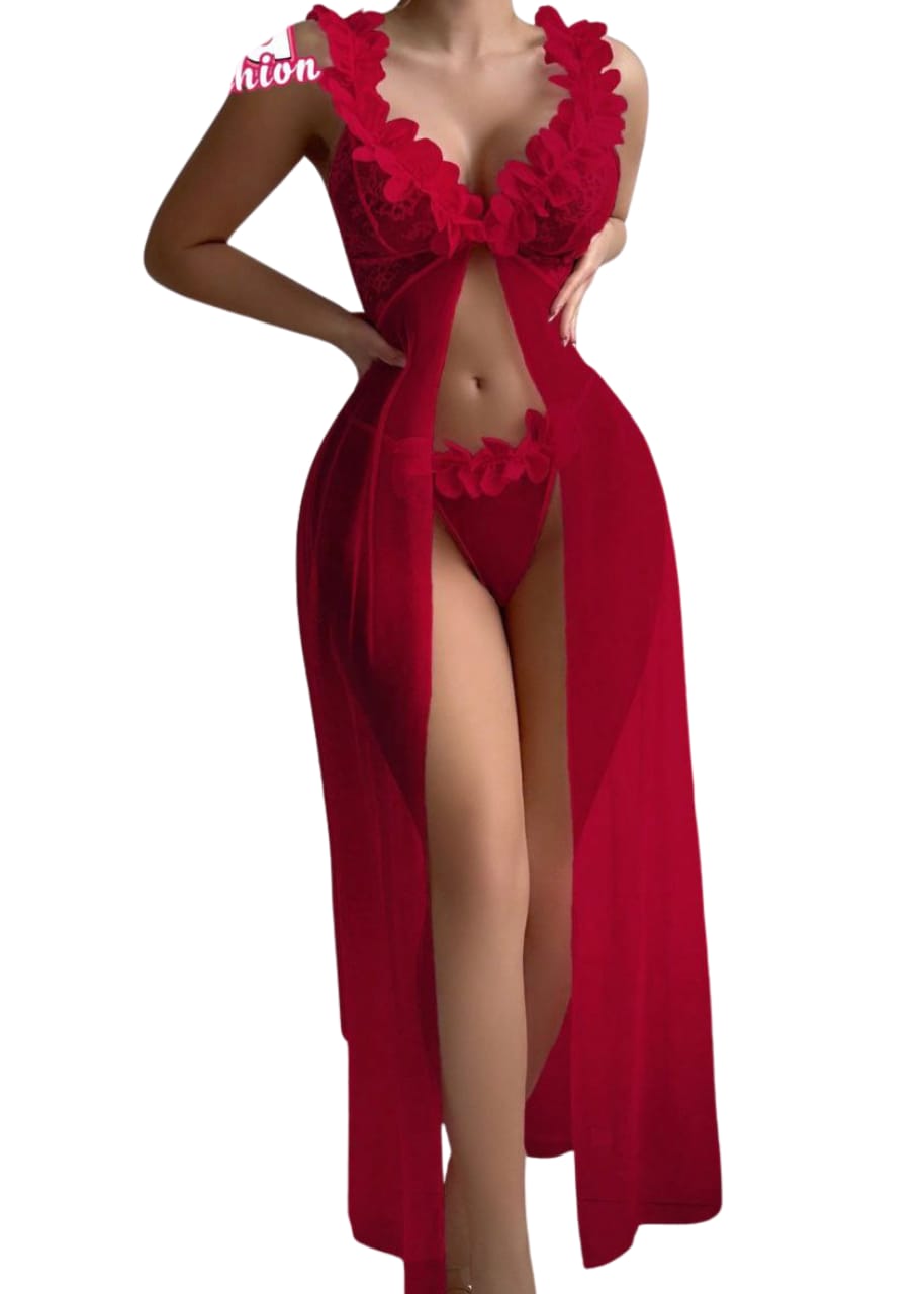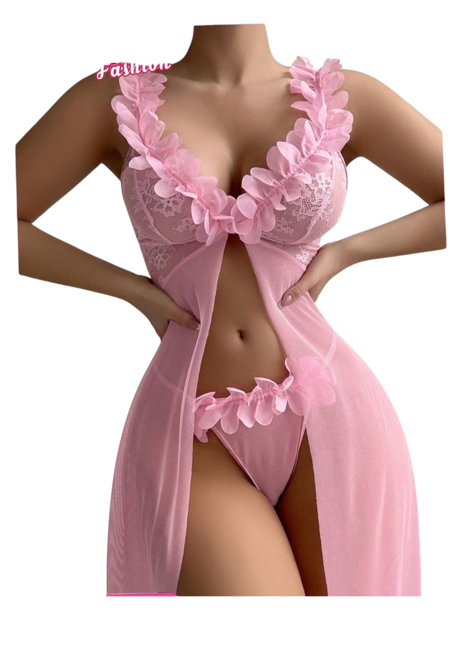 طقم لانجري قطعتين من الشيفون الطويل بتصميم أنثوي فاخر يبرز جمال التفاصيل ويضيف لمسة من الرقي والنعومة.