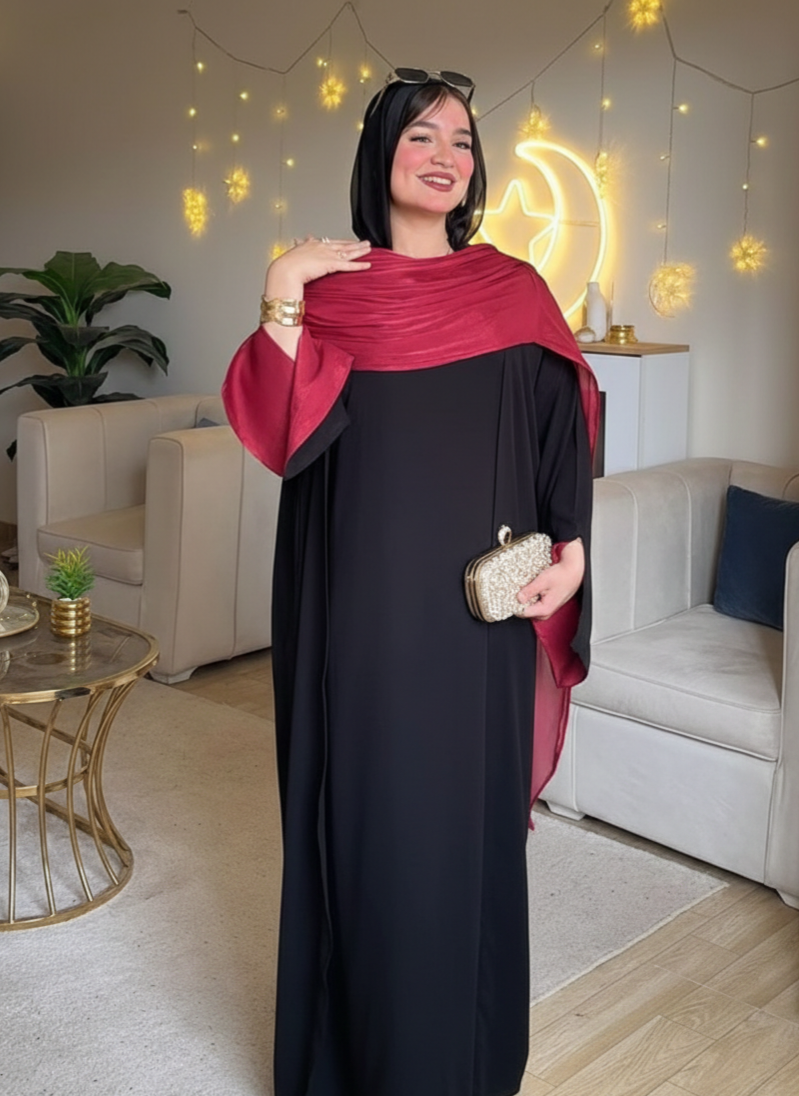 Step into effortless elegance with our Two-Piece Abaya Set, thoughtfully designed to combine comfort, style, and sophistication. This stunning set features a basic solid dress paired with an open-front organza cardigan, creating a graceful and refined silhouette perfect for any occasion.